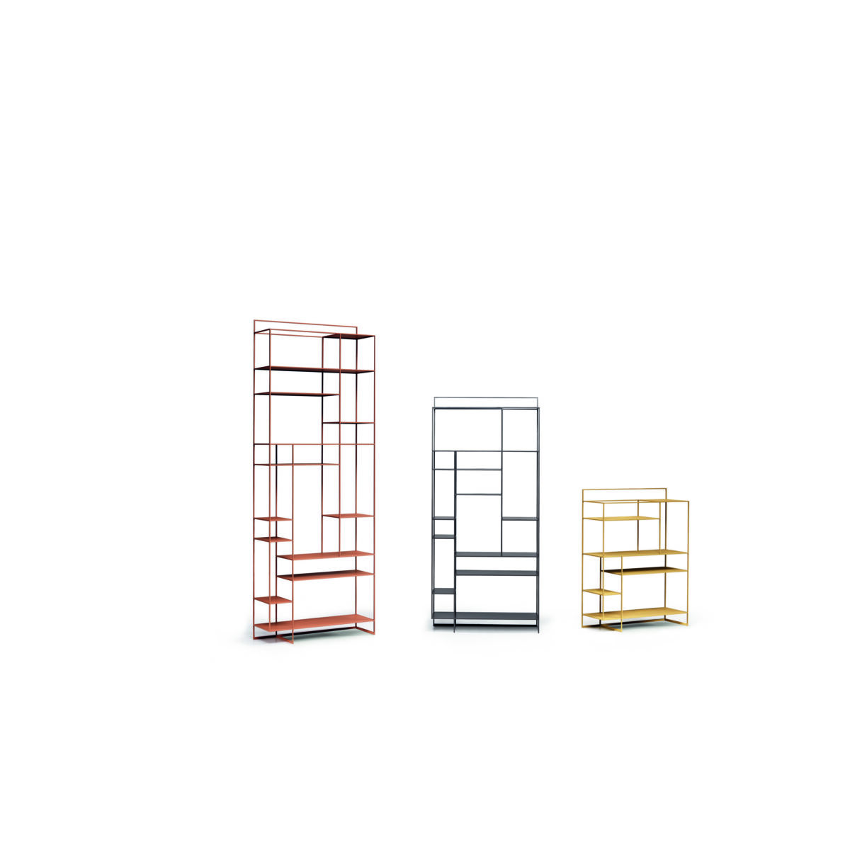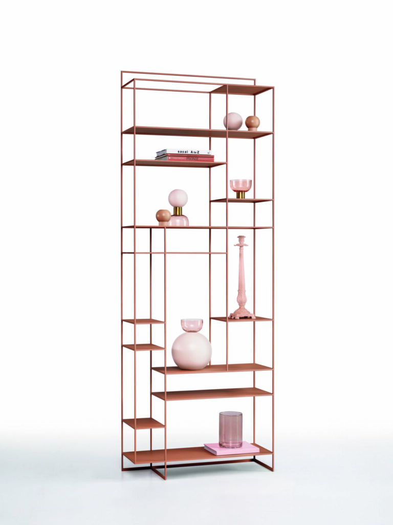 Levia Tall de la marque Ronda Design est une bibliothèque issue d’un trait minimaliste, presque abstrait. Les lignes fines et la silhouette légère dessinent une structure en métal peint qui révèle une âme forte, robuste et spacieuse. Un jeu géométrique de hauteurs et de joints est créé par la disposition particulière et asymétrique des étagères volumineuses qui, soutenues par les fines barres verticales de la structure, semblent suspendues à des fils métalliques effilés. Le résultat est un design exclusif et surprenant.
